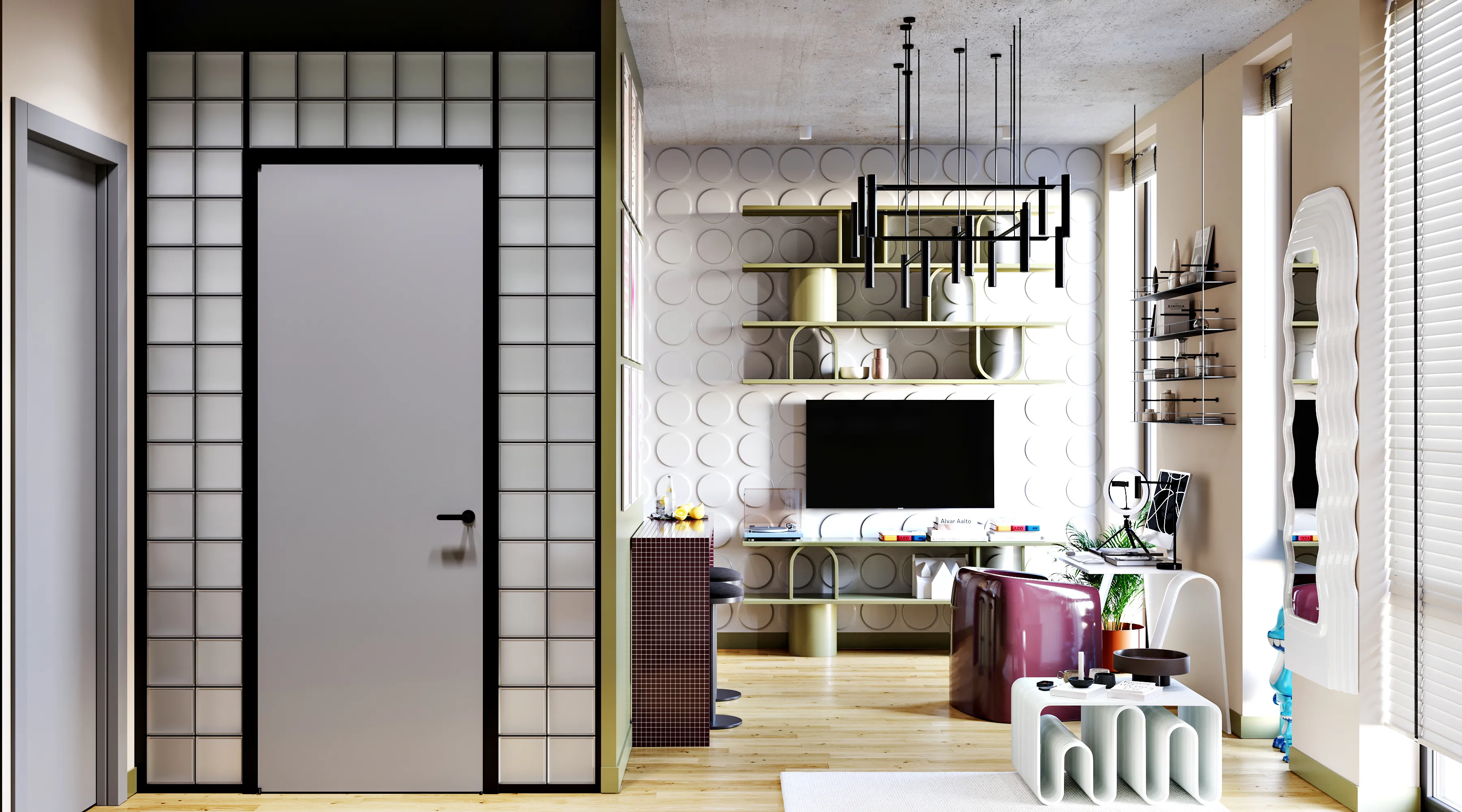 To unlock the full potential of a standard studio layout for a young, dynamic audience. We developed a powerful, graphic design concept and expressed it through three distinct color palettes. This study demonstrates how color and curated decor can completely transform a space.
