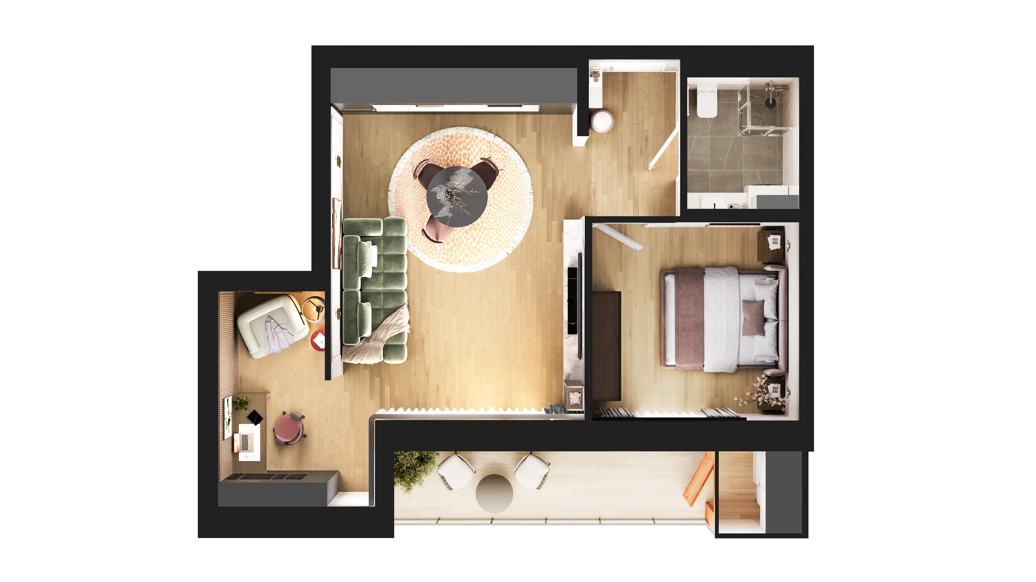 The Outcome: We systematized a massive volume of visual content. The client received beautiful exteriors, clear floor plans and virtual tours. We delivered unique interiors for twenty-four units and a captivating animated film. Our studio fully adapted the materials to the developer website logic. We packaged the project for successful and fast sales.