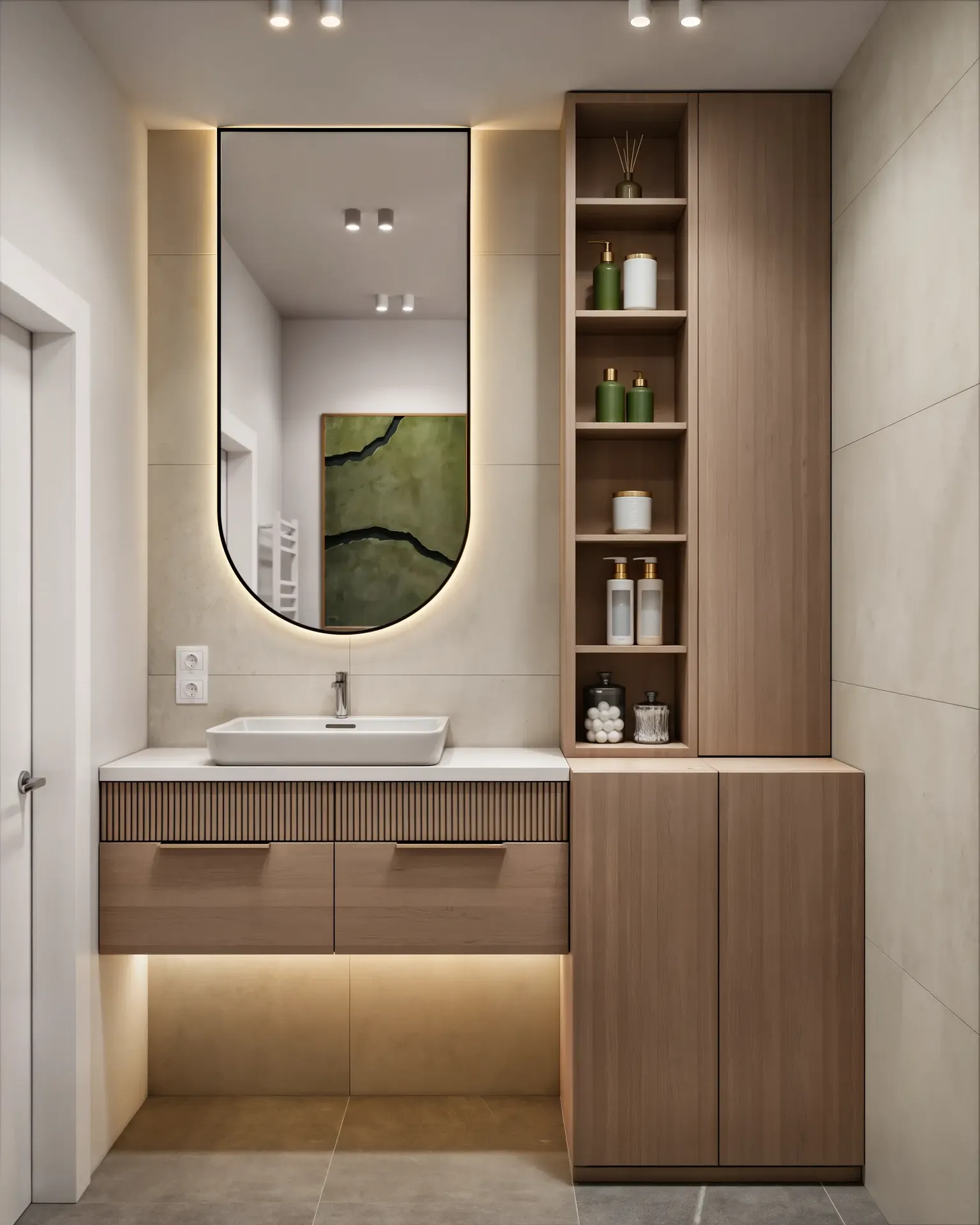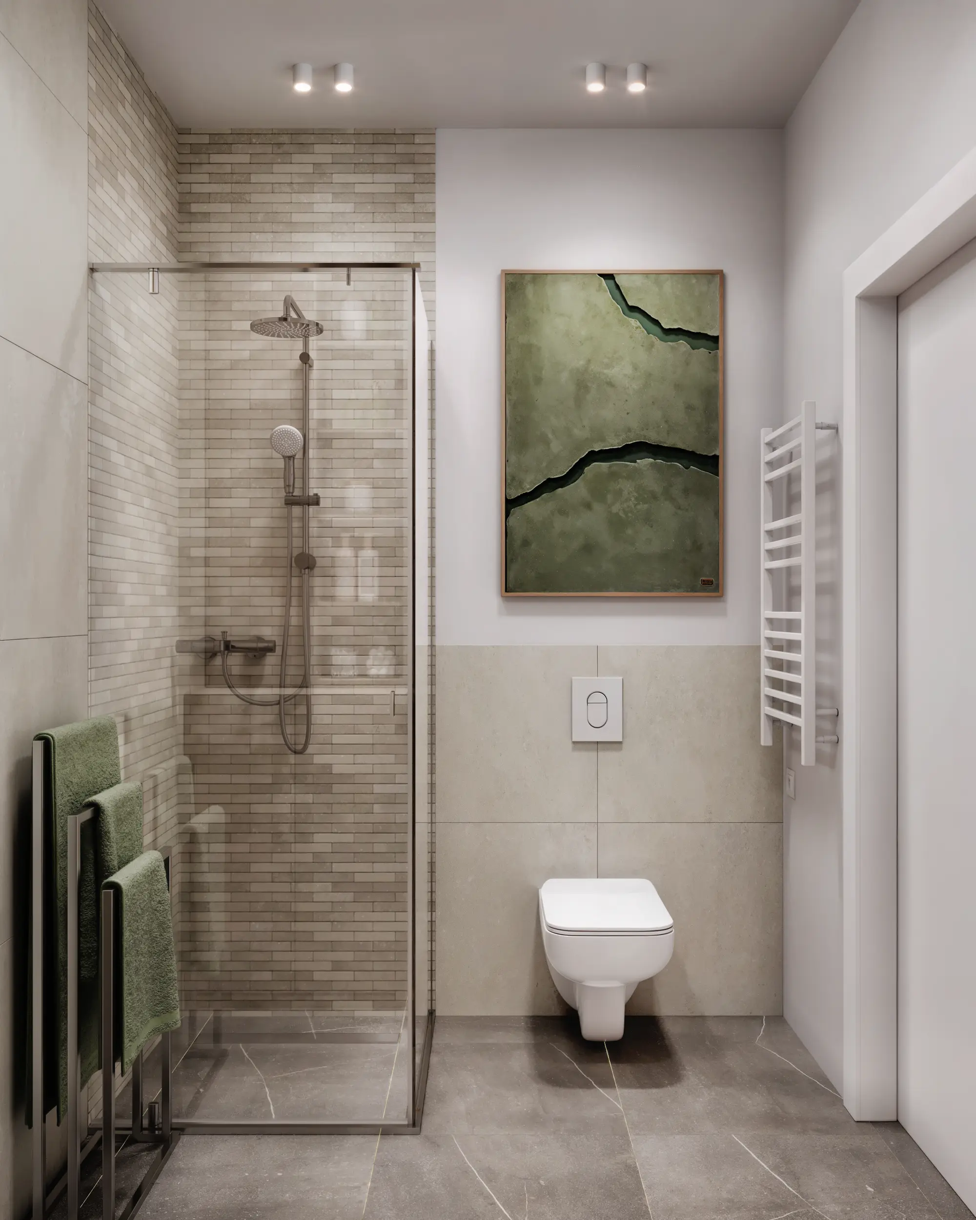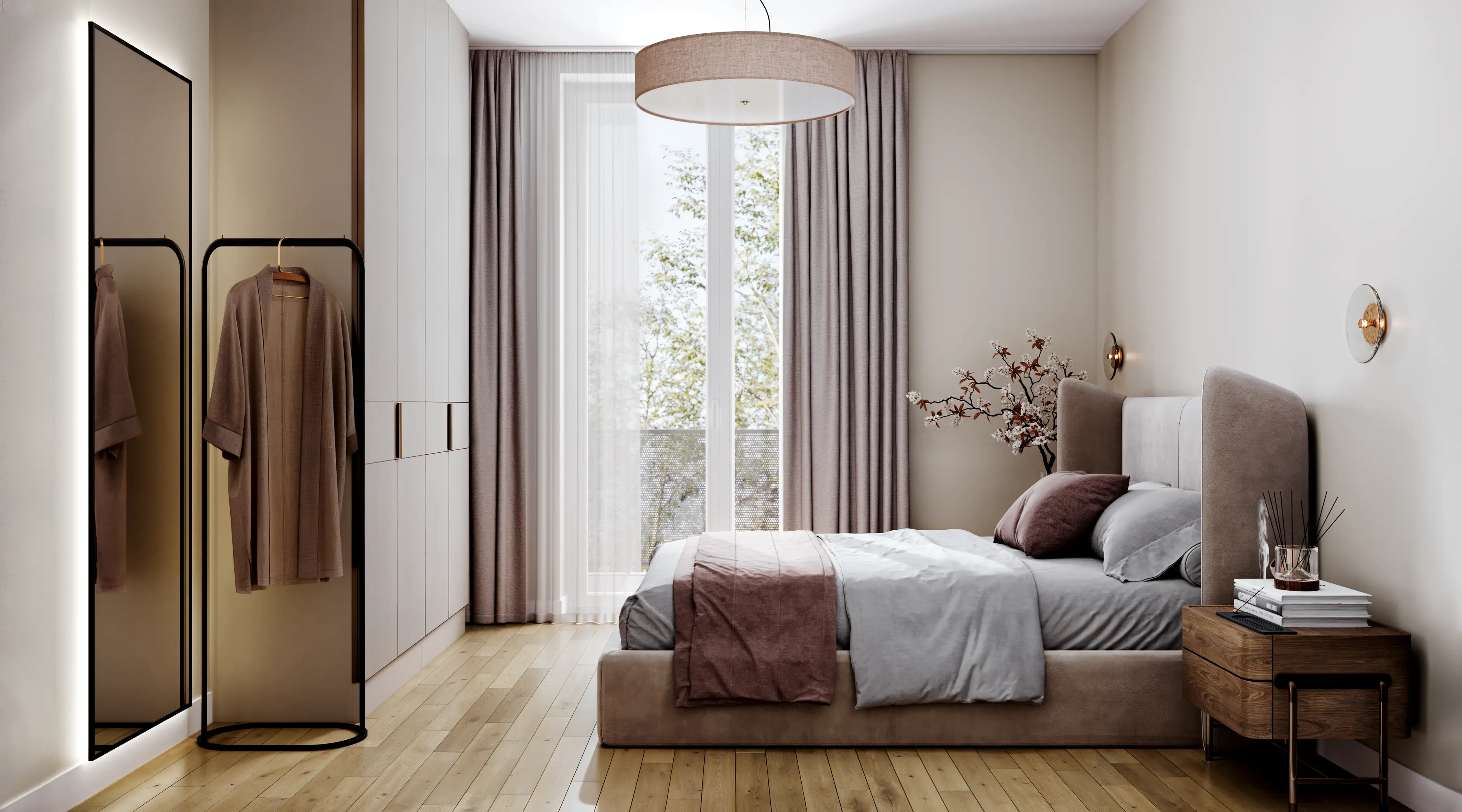 We applied a rational approach to the bedrooms and bathrooms. The geometry of these rooms is identical throughout the building. Therefore we created stylish universal interiors suitable for any apartment. This solution significantly saves the developer budget and time without any loss of quality.