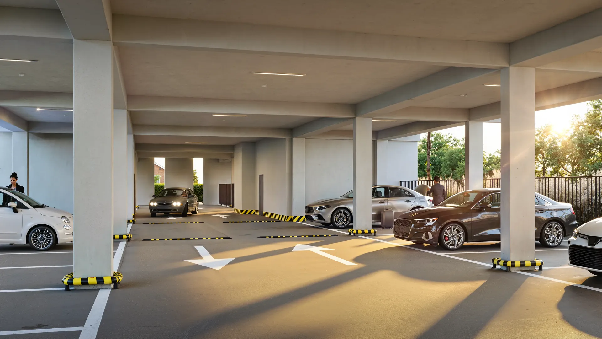 We showed the covered parking from eye level to convey a realistic atmosphere. Additionally we developed a detailed top-down view. This comprehensive master-plan is perfect for website integration. Buyers can easily choose and book parking spaces online.