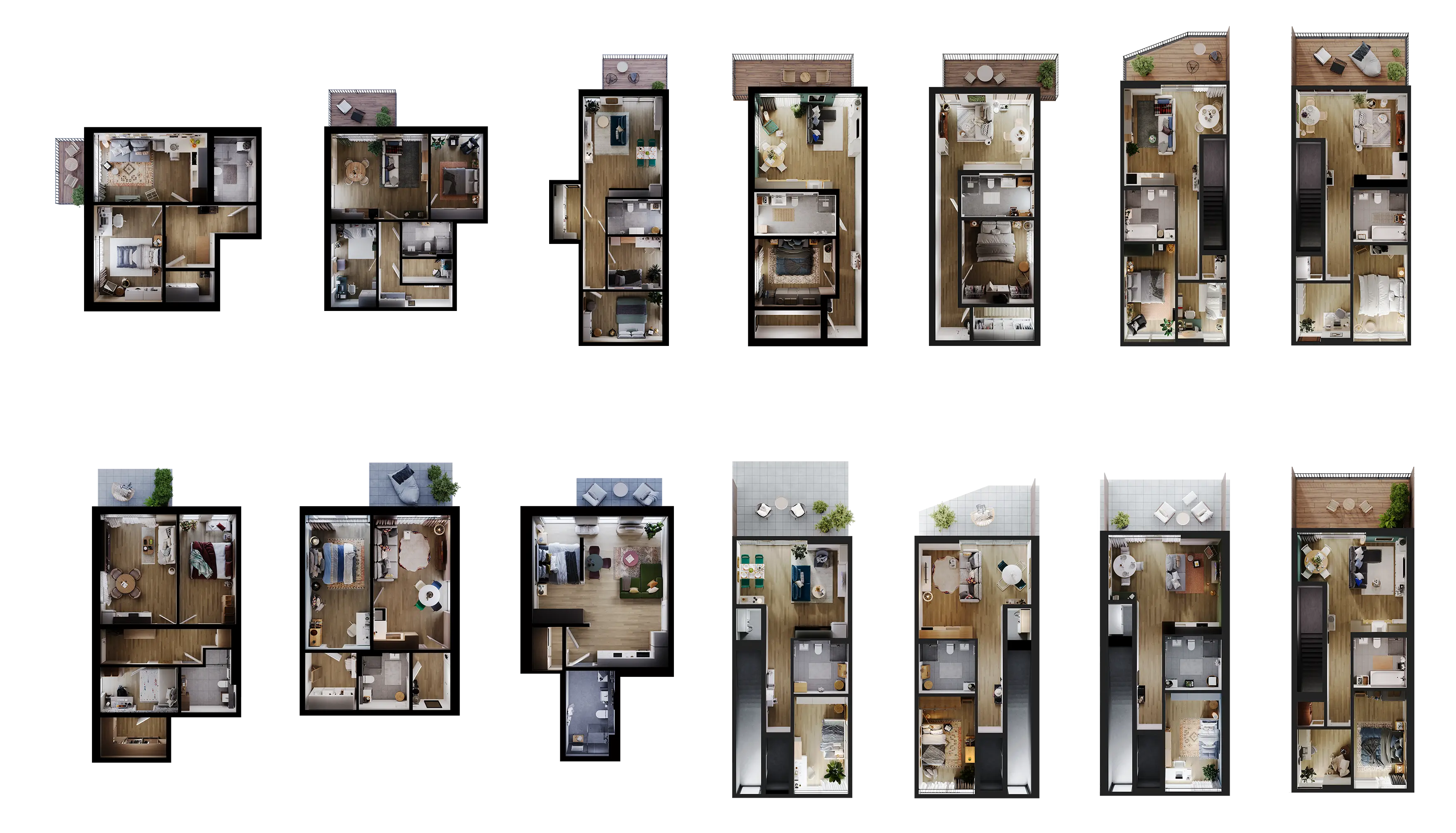 The project required distinct marketing assets for a total of 14 unit types: