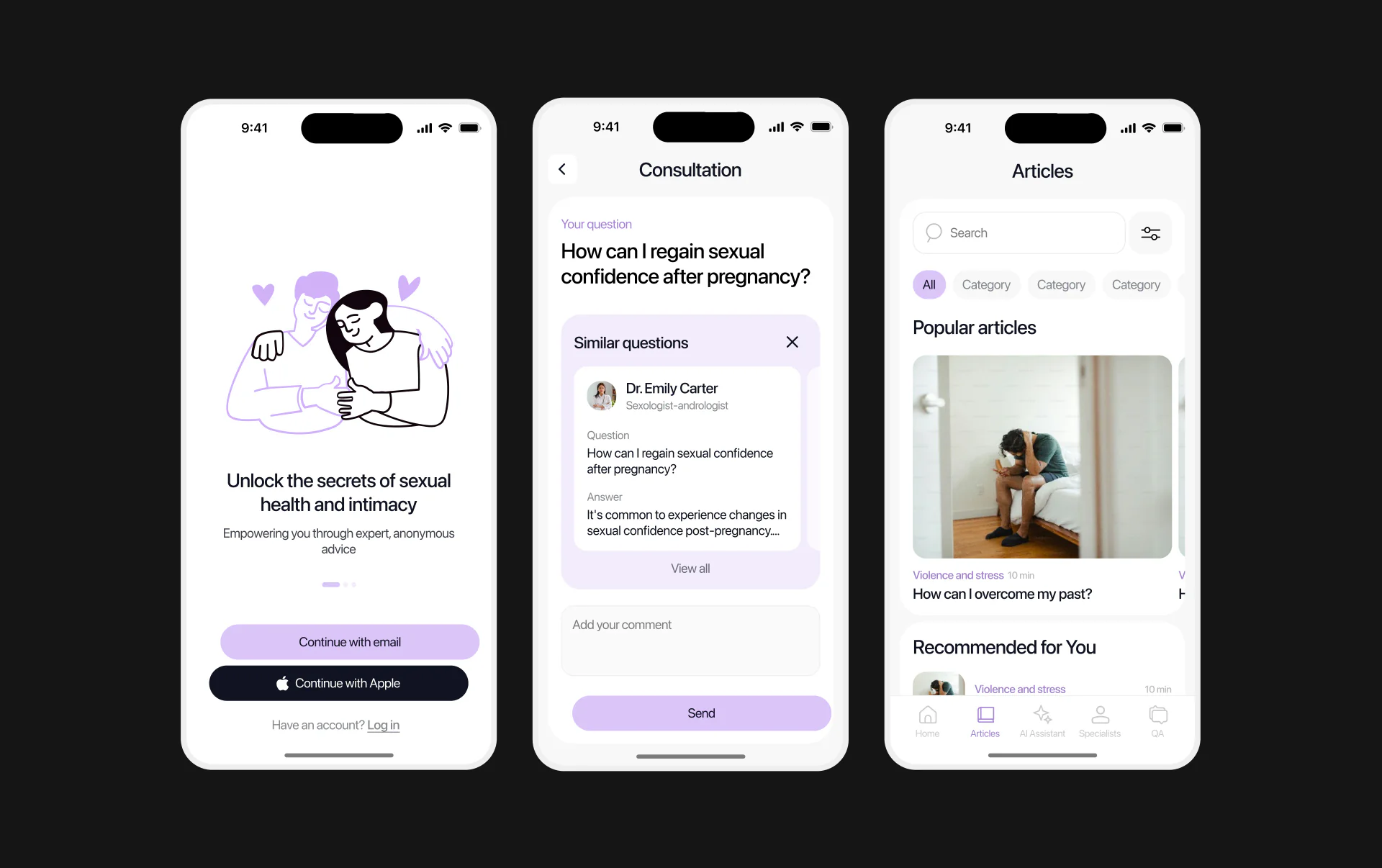 Signal is a mobile app for anonymous consultations on sexual health. It provides users with quick and safe access to qualified sexologists without the need for visits, waiting, or awkwardness, and also offers free advice and materials for self-study.