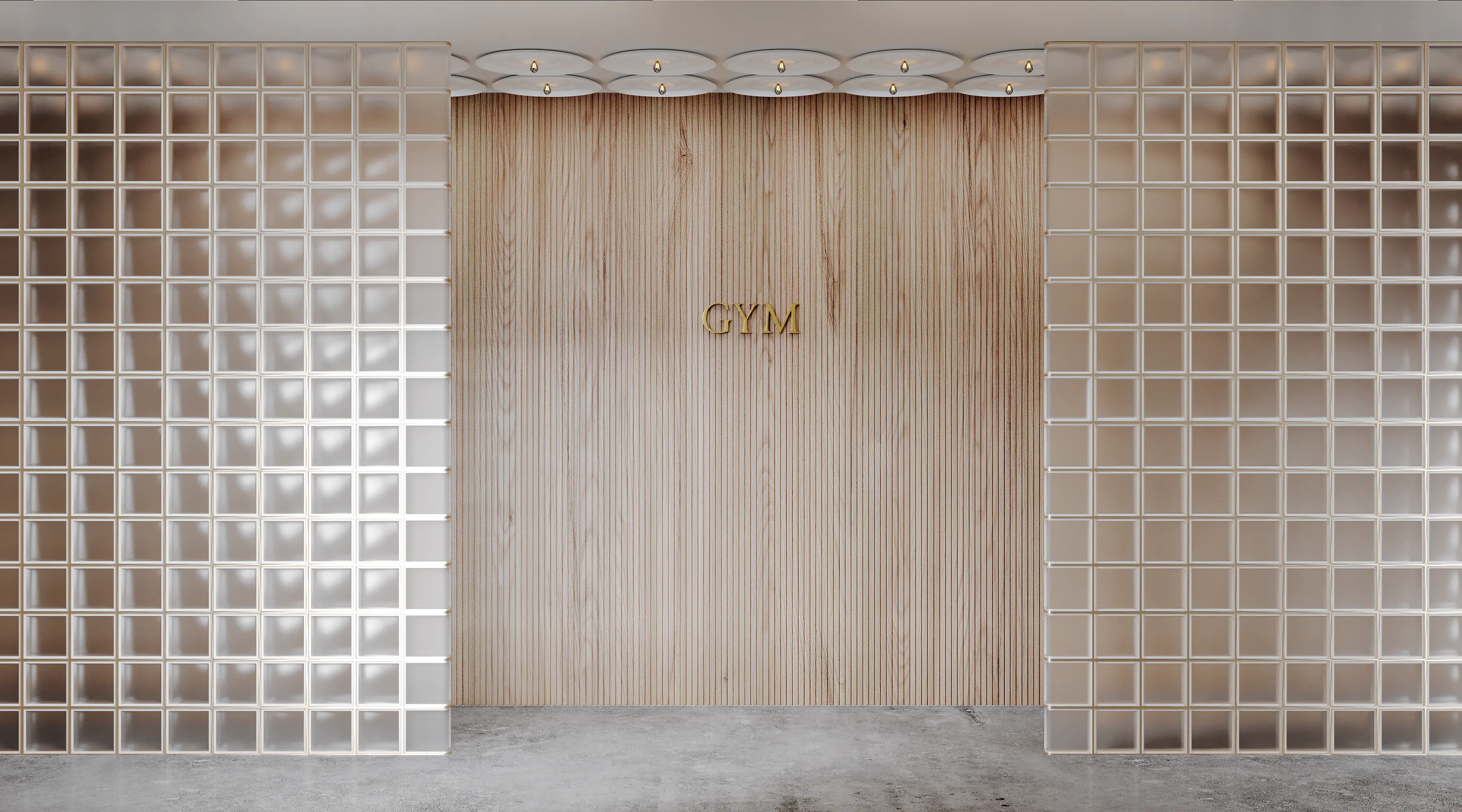 Glass block walls allow natural light to permeate deep into the fitness zones while maintaining privacy. Inside the gym, we counteracted the coldness of metal cardio equipment by integrating wooden wall paneling. This not only adds visual warmth but serves a functional purpose by absorbing excess noise.