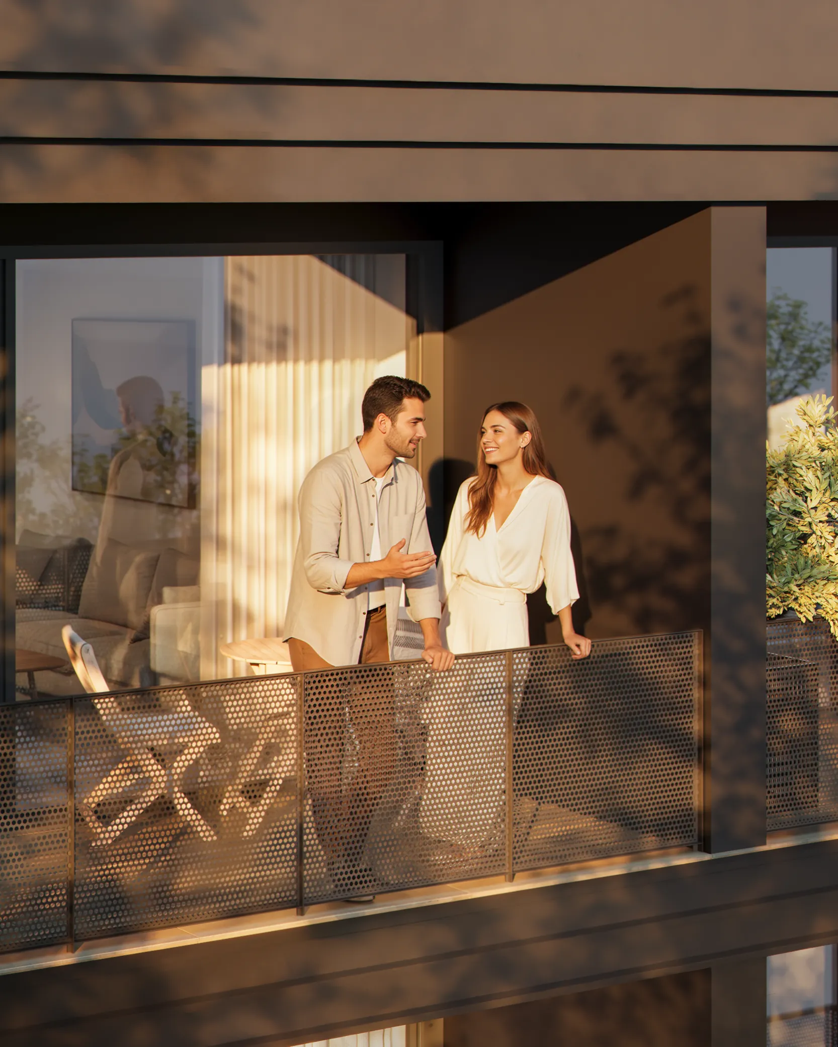 Wir haben den Wohnkomfort im Neubau visuell hervorgehoben. Gemütliche, großzügige Balkone schaffen eine Atmosphäre der privaten Entspannung. Ein moderner Fahrradabstellplatz unterstreicht das Augenmerk auf den Komfort der zukünftigen Bewohner.