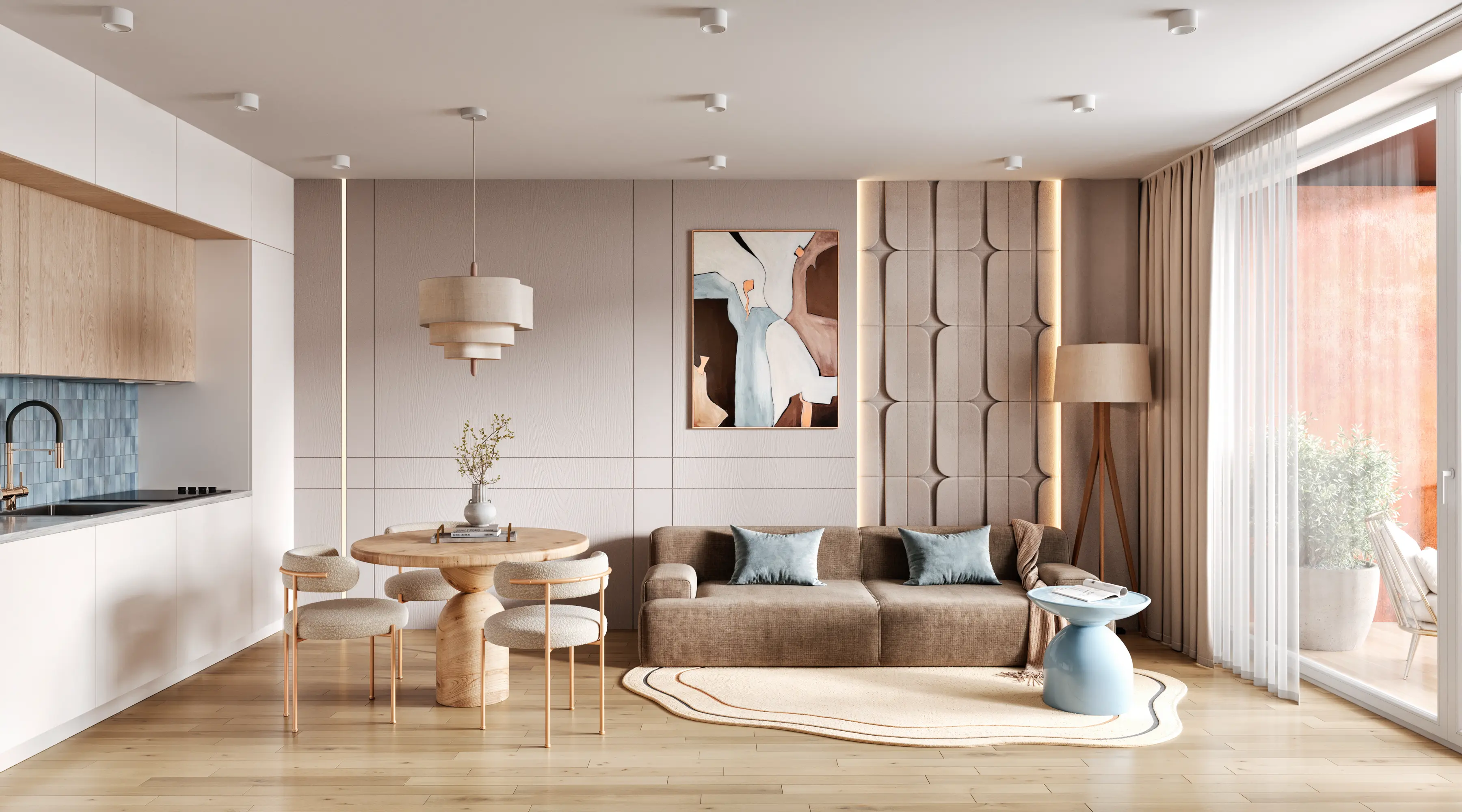 Wir haben das Hauptproblem typischer Wohnbauprojekte gelöst: Der Immobilienkatalog sollte nicht wie ein langweiliges Raster aus identischen Bildern aussehen. Unser Team entwickelte vierundzwanzig einzigartige Interior-Designs für die Wohnküchen. Die Raumgeometrie blieb dabei unverändert. Jede Wohnung erhielt ihren ganz eigenen Charakter und ein ansprechendes Hero-Rendering.