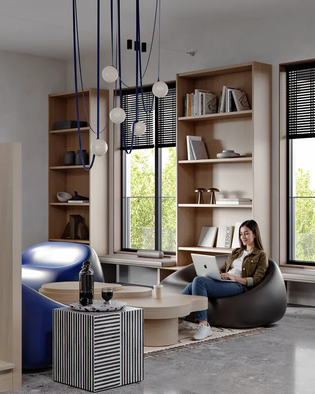 Das Herzstück des Projekts ist der atemberaubende Panorama-Meerblick. Unser Hauptziel war es, sicherzustellen, dass unsere Interieur-Visualisierungen diese Verbindung zur Außenwelt zelebrieren. Durch eine präzise Licht- und Reflexionsgestaltung haben wir hervorgehoben, wie die raumhohen Fenster den offenen Raum mit natürlichem Licht durchfluten und so ein nahtloses Gefühl der Einheit mit dem Himmel und dem Wasser im Hintergrund schaffen.